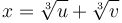 \[x=\sqrt[3]{u}+\sqrt[3]{v}\]